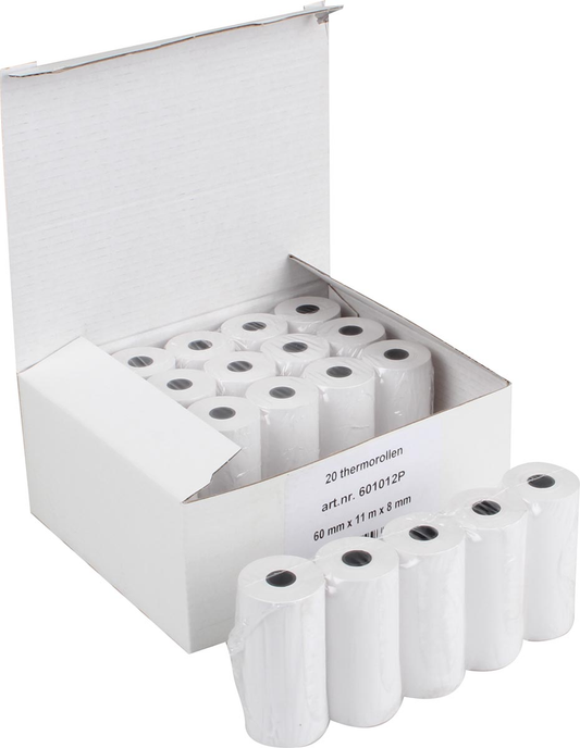 Thermische rekenrol ft 57 mm, diameter +-28 mm, asgat 8 mm, lengte 11 meter, pak van 5 rol, BPA vrij