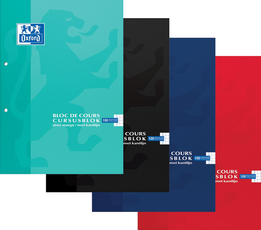 • Oxford SCHOOL cursusblok, geassorteerde kleuren, ft A4, 100 vel, geruit 5 mm