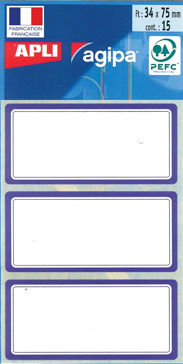 Agipa schooletiketten ft 75 x 34 mm (b x h), 24 etiketten per etui, blauwe rand