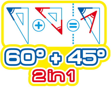 Inhoud: 1x liniaal 300 mm, tekendriehoek 2in1: 45 graden & 60