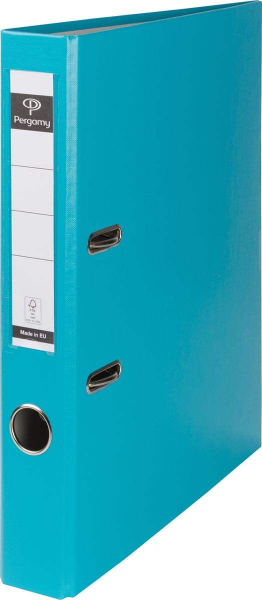 Pergamy ordner, voor ft A4, uit PP en papier, rug van 5 cm, turkoois