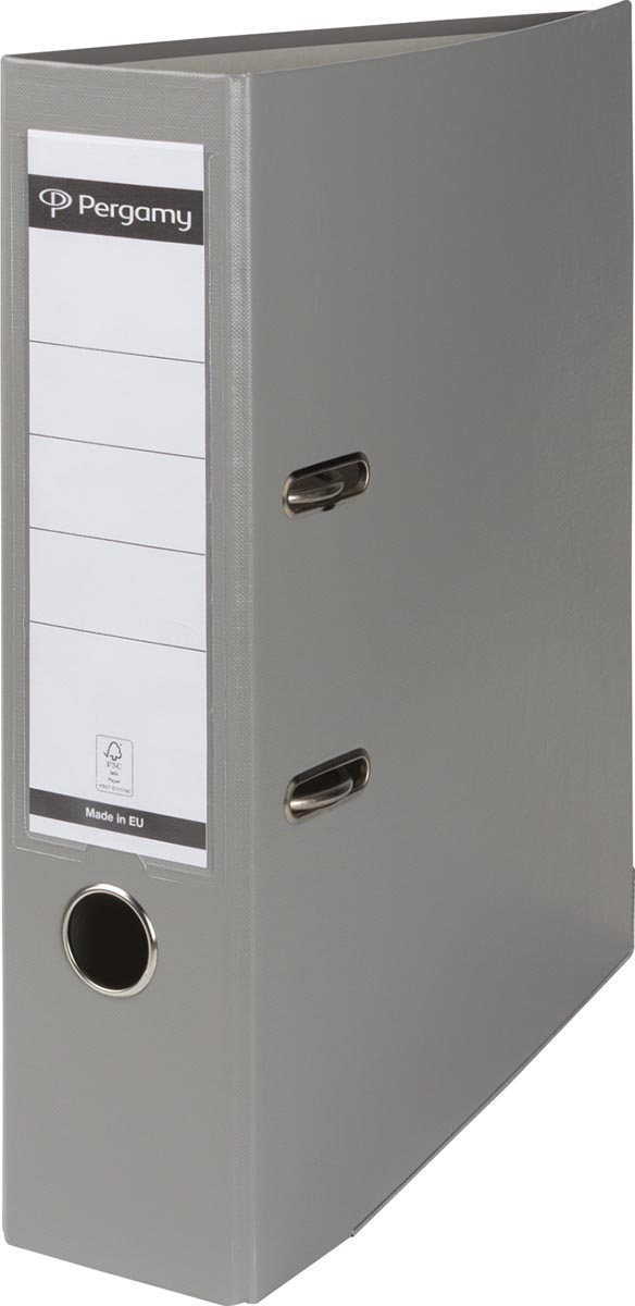 Pergamy ordner, voor ft A4, uit PP en papier, rug van 8 cm, grijs