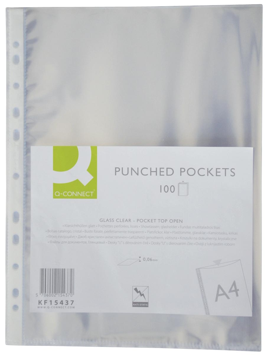 Q-Connect geperforeerde showtas 11-gaatsperforatie, glashelder, 60 micron, pak van 100 stuks